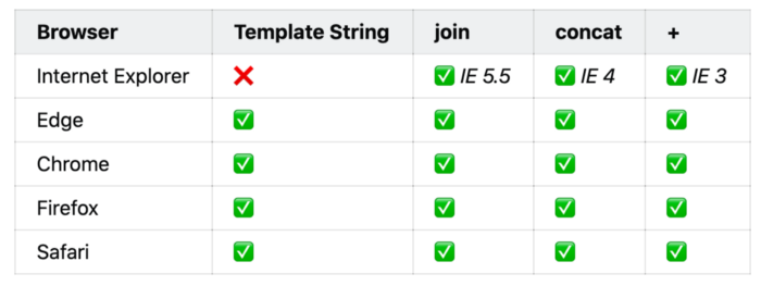 Template string không cần phải quan tâm đến dấu ngoặc kép , khoảng trống giữa các kí tự hay là các dấu toán tử lộn xộn.