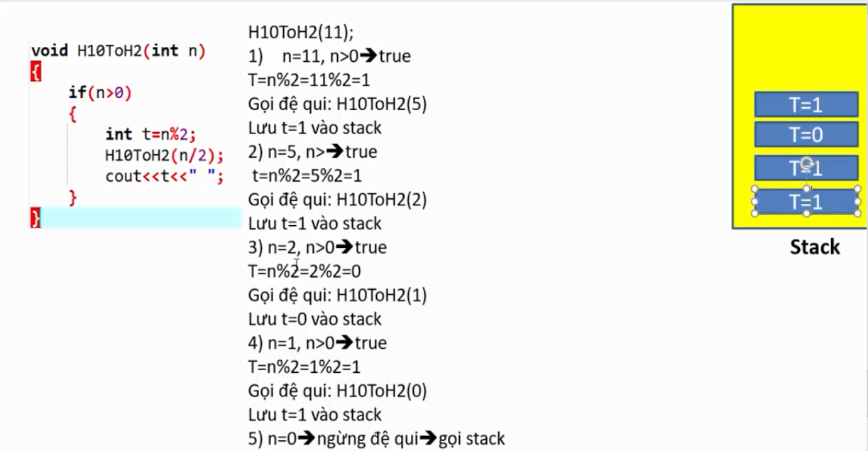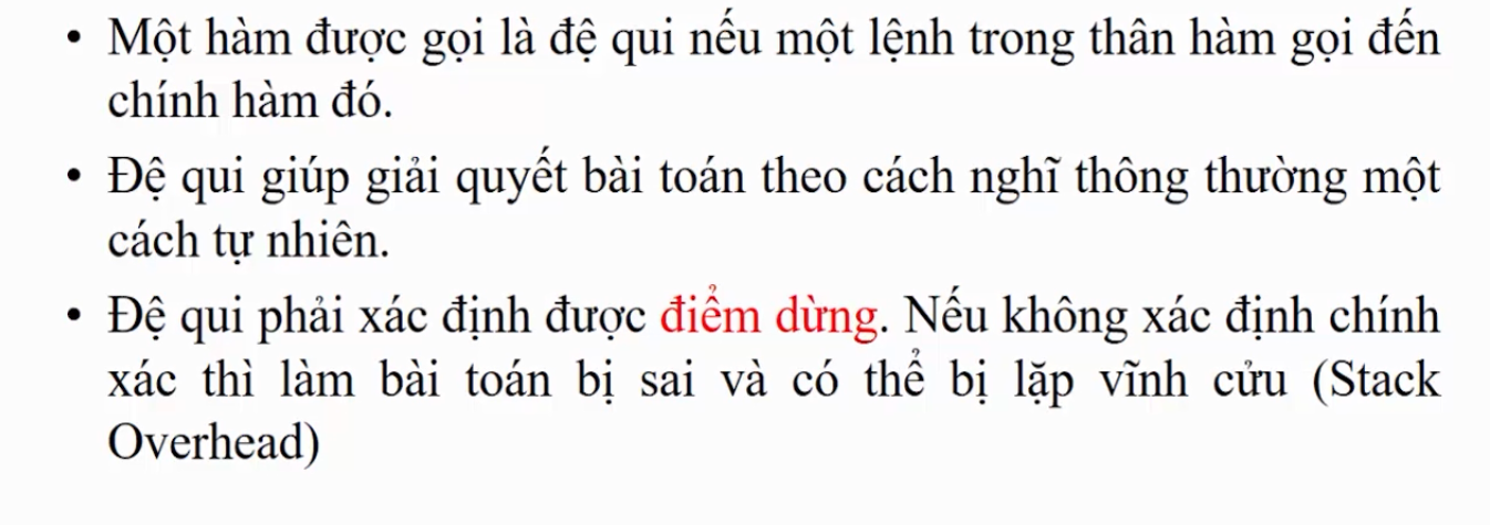 cần tìm điểm dừng và quy luật khi dùng đệ quy
